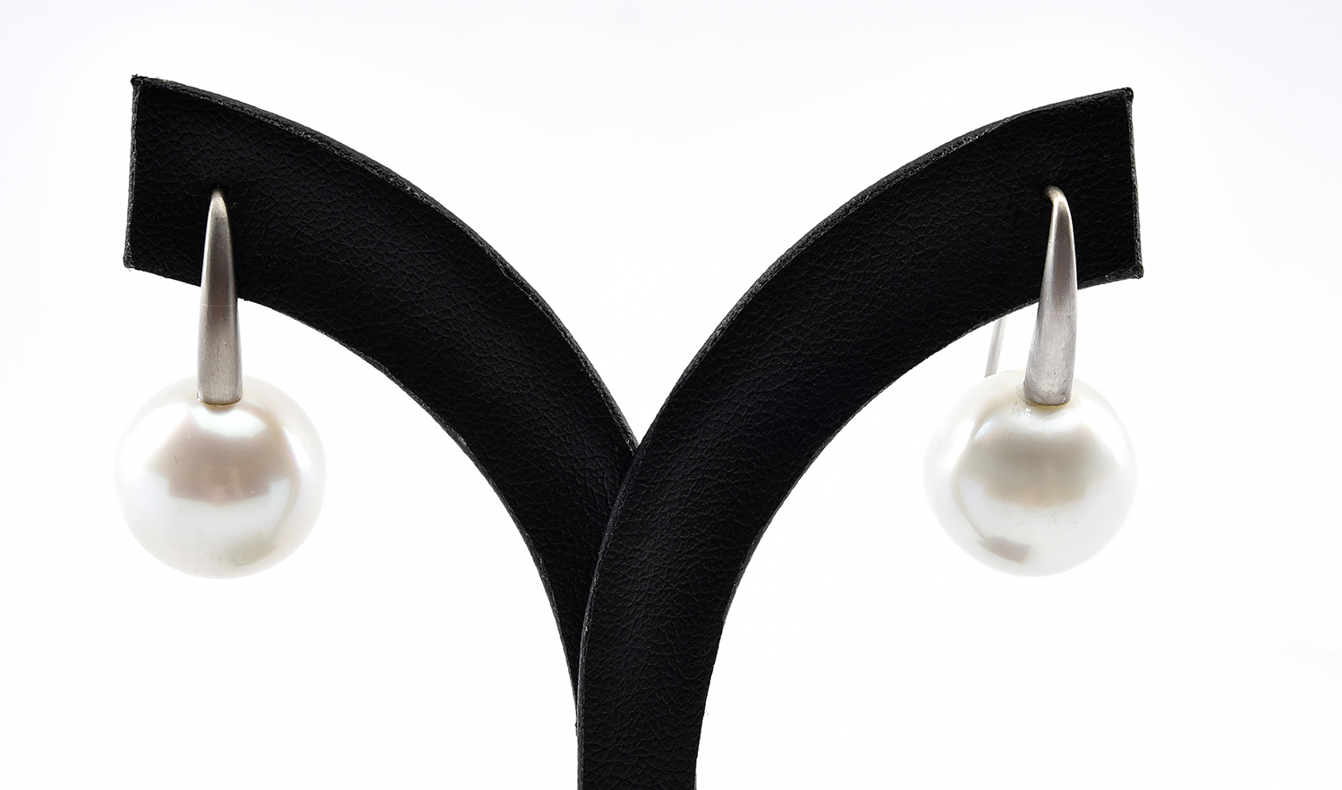 A PAIR OF SOUTH SEA PEARL (15MM) EARRINGS TO HOOK FITTINGS IN 18CT WHITE GOLD