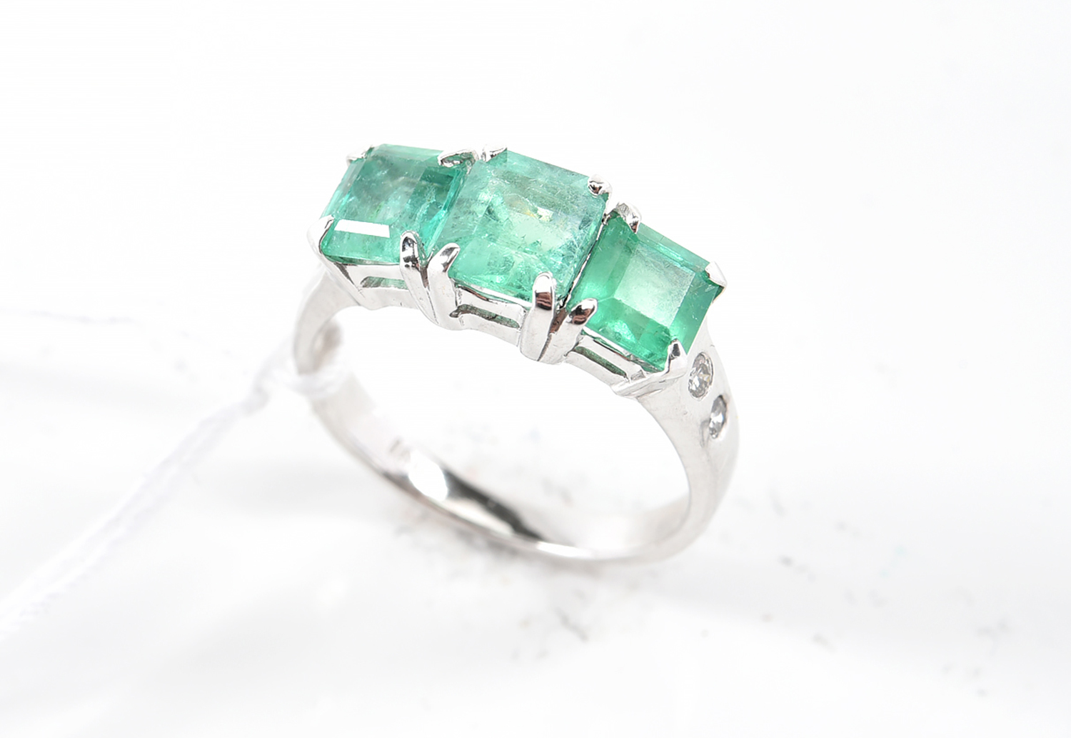 The emeralds present a medium green colour.