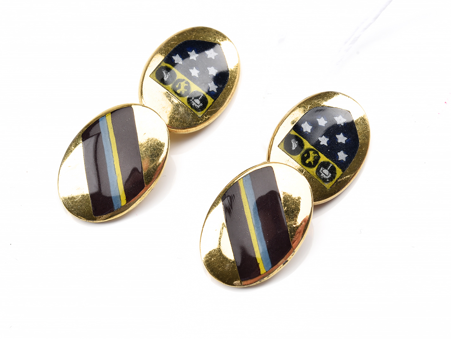 A PAIR OF HERALDIC ENAMELLED CUFFLINKS IN GILT