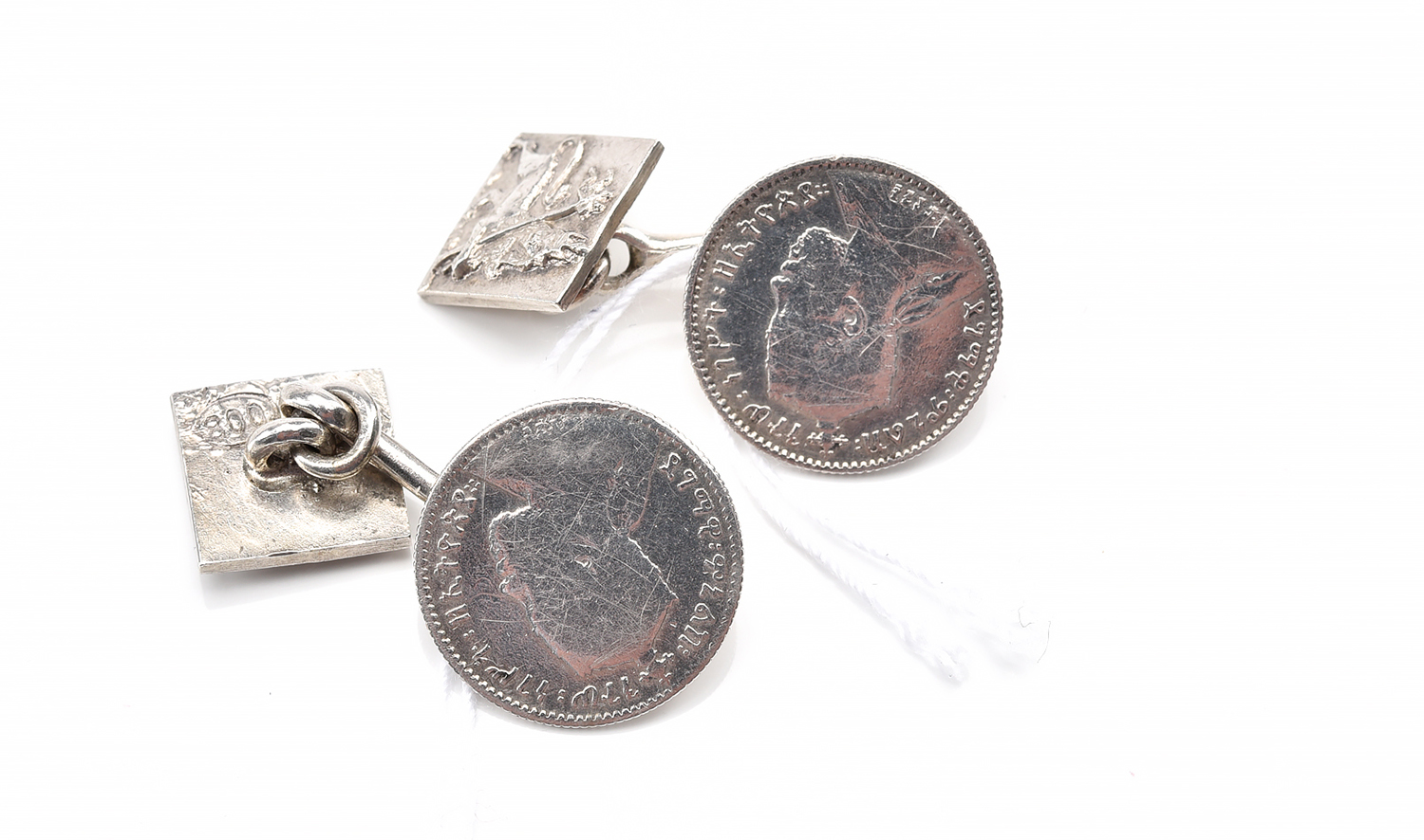 A PAIR OF COIN CUFFLINKS IN 800 SILVER