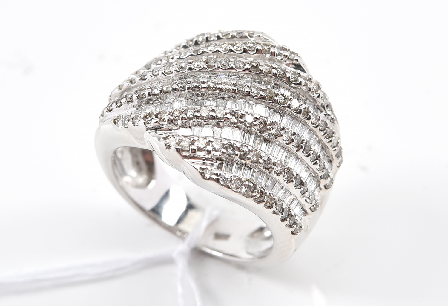 A TEAR DROP SHAPED DIAMOND RING TOTALLING APPROXIMATELY 4.36CTS, IN 18CT WHITE GOLD, SIZE K, 7.6GMS