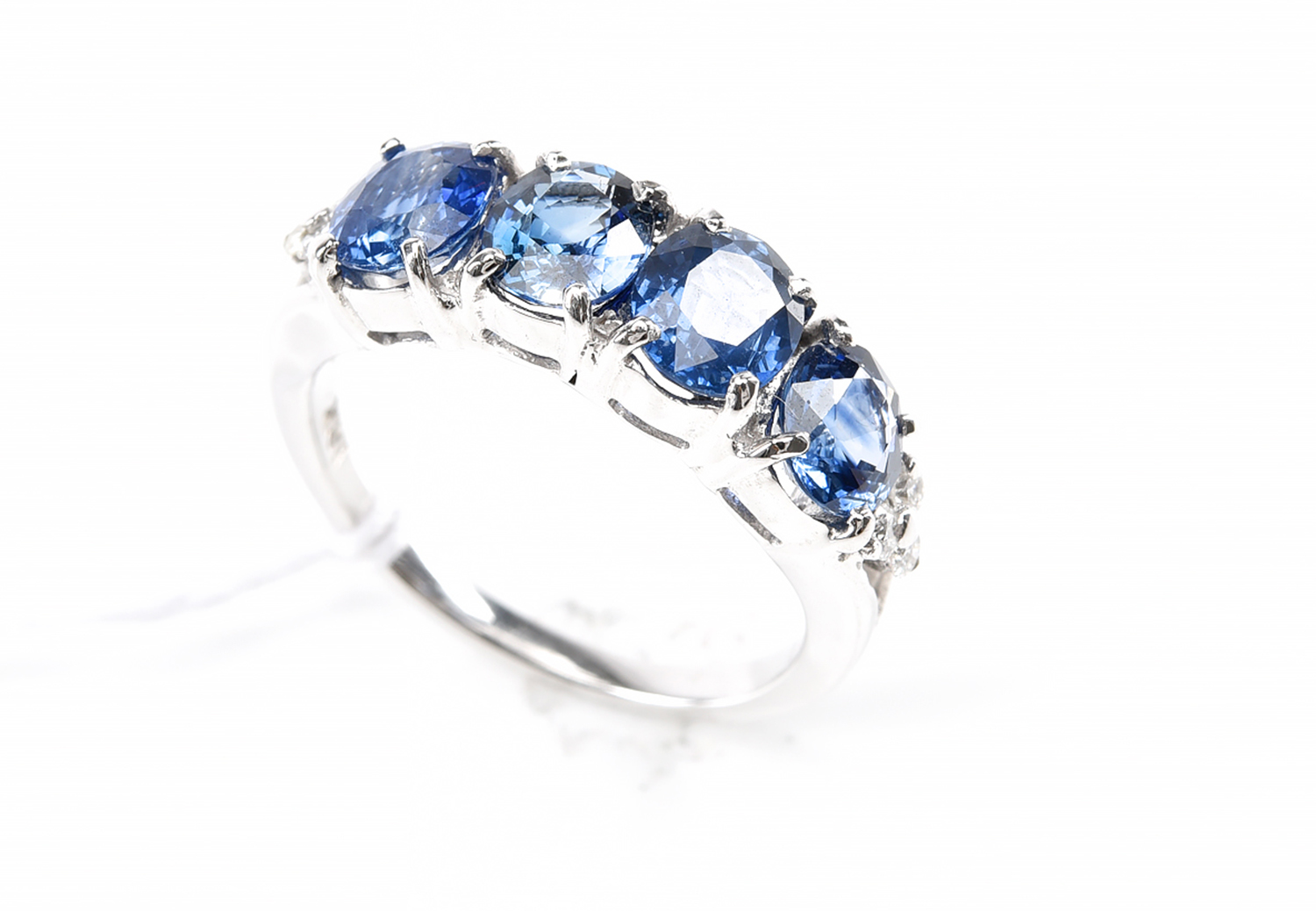 The sapphires are Ceylon type gemstones showing a deep blue colour.