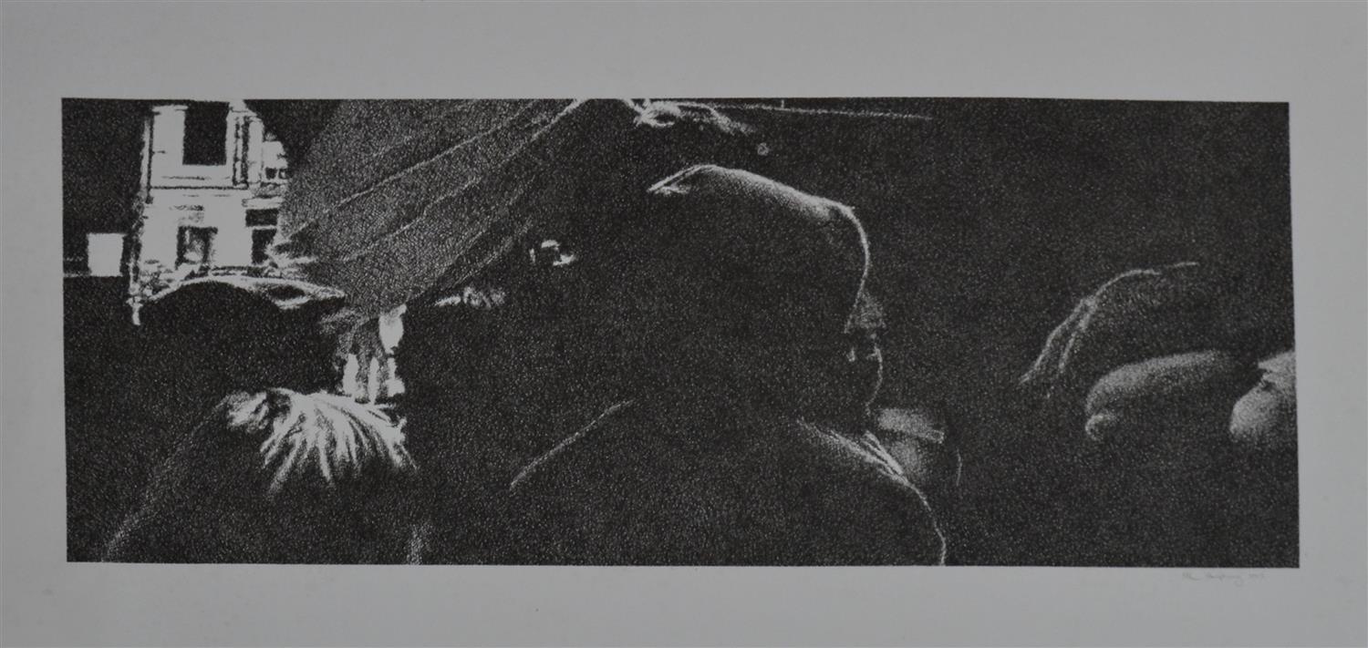 § MICHAEL PECK, PERIPHERY 2002, INK ON PAPER, SIGNED AND DATED LOWER RIGHT: MP, CONDITION: UNFRAMED, FOXING THROUGHOUT, MINOR HANDLING MARKS AND CREASES