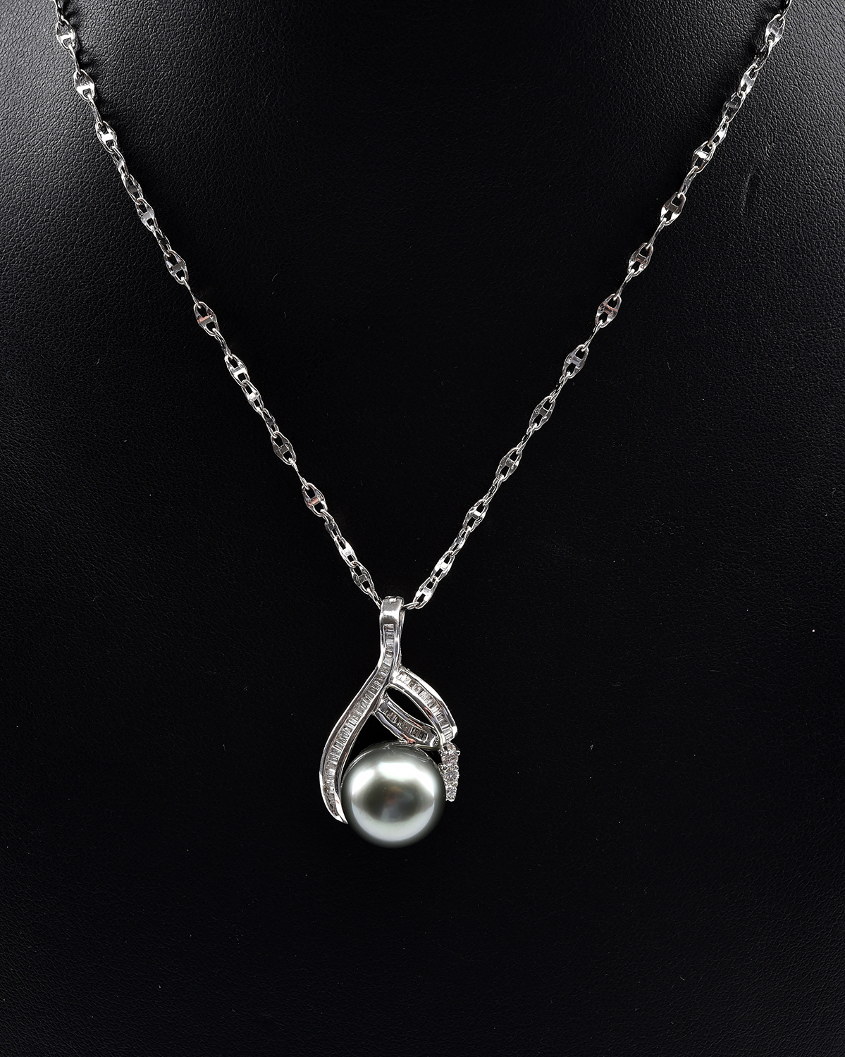 A TAHITIAN PEARL AND DIAMOND PENDANT WITH CHAIN, IN 18CT WHITE GOLD, 7.3GMS