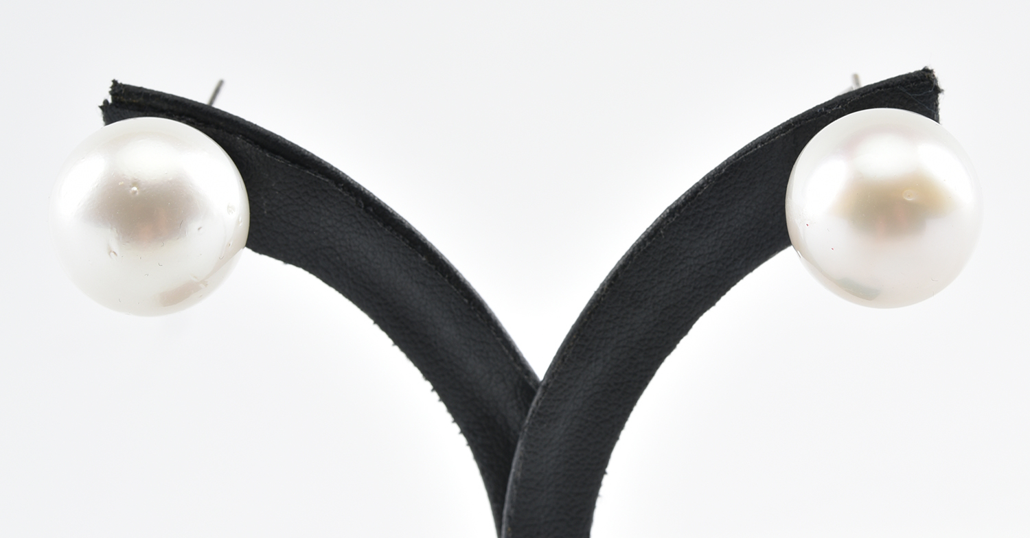 A PAIR OF SOUTH SEA PEARL EARRINGS IN 18CT WHITE GOLD, THE ROUND PEARLS MEASURING 16MM, TO POST AND BUTTERFLY FITTINGS