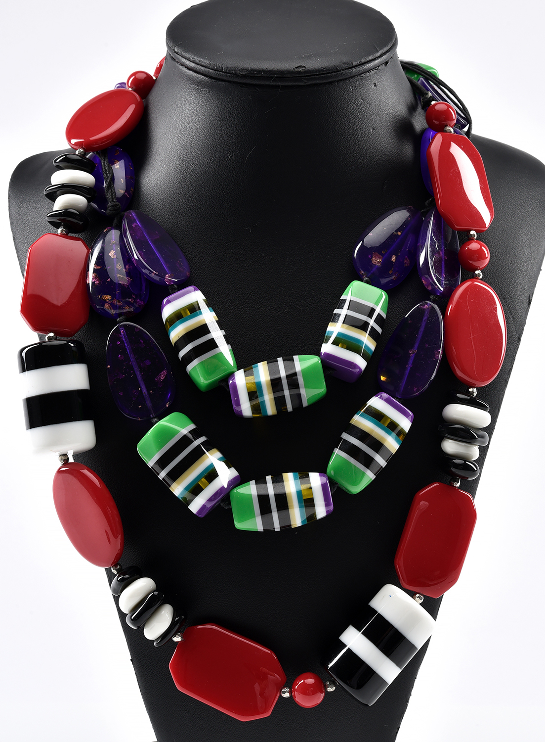 TWO GEOMETRIC RESIN COSTUME NECKLACES