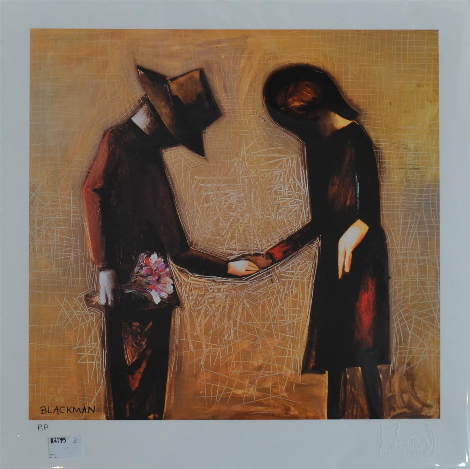 A CHARLES BLACKMAN PRINT, THE MEETING, DIGITAL PRINT P/P, UNSIGNED, IMAGE SIZE: 28.5 X 28.5CM, UNFRAMED, GOOD CONDITION WITH NO FAULTS, PAPER SIZE: 35 X 33CM