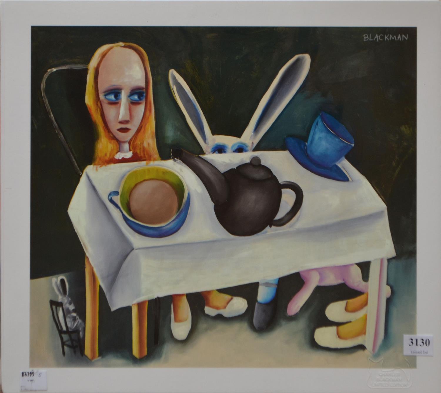 A CHARLES BLACKMAN PRINT, FEET BENEATH THE TABLE, DIGITAL PRINT P/P, UNSIGNED, 28.5 X 33CM, UNFRAMED, GOOD CONDITION WITH NO FAULTS