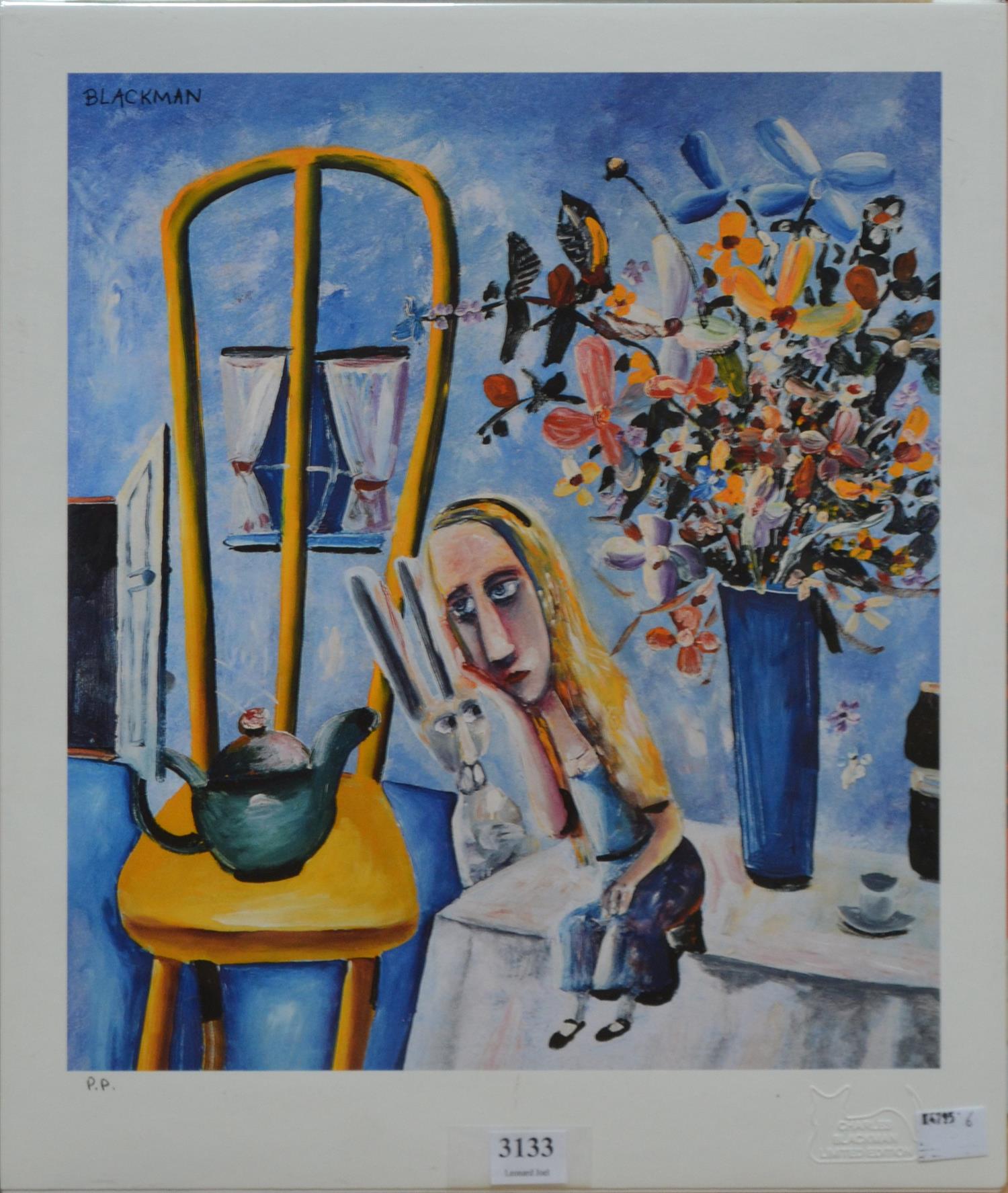 A CHARLES BLACKMAN PRINT, ALICE ON THE TABLE, DIGITAL PRINT P/P, UNSIGNED, 32.5 X 28.5 CM SHEET SIZE: 39 X 33CM
