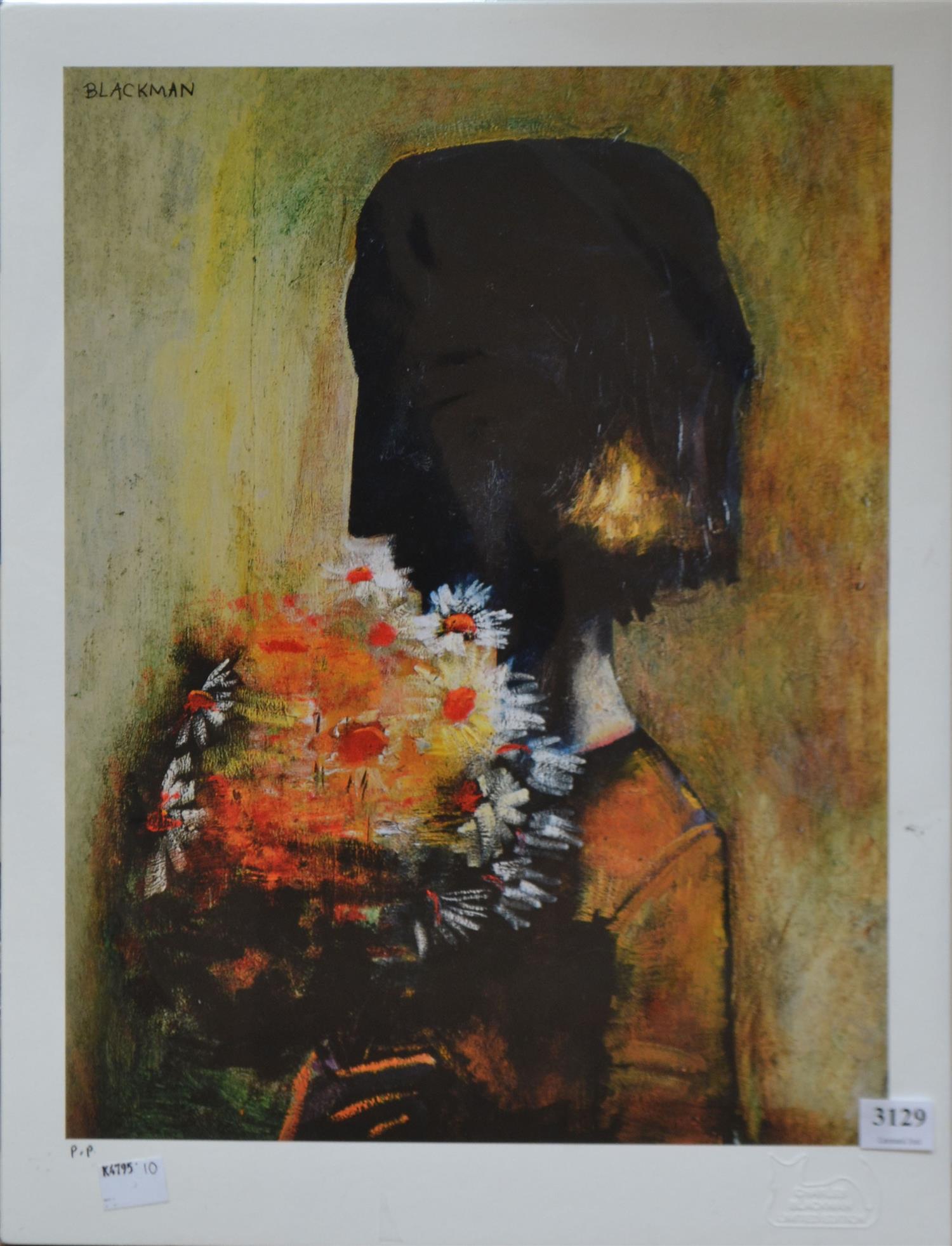 A CHARLES BLACKMAN PRINT, GIRL WITH THE YELLOW BOUQUET, DIGITAL PRINT P/P, UNSIGNED, 28.5 X 38CM, UNFRAMED, GOOD CONDITION WITH NO FAULTS