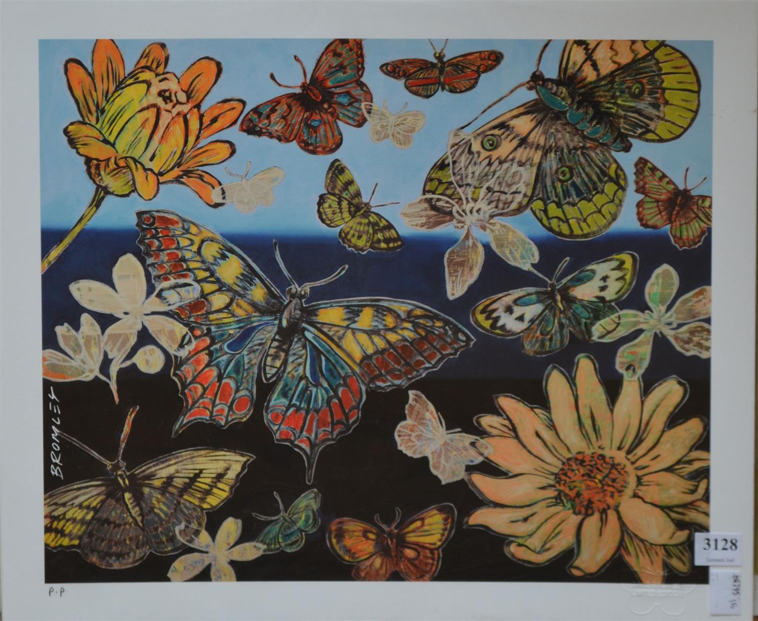 A DAVID BROMLEY PRINT, BUTTERFLIES I, DIGITAL PRINT P/P, UNSIGNED, 28.5 X 35CM, UNFRAMED, GOOD CONDITION WITH NO FAULTS