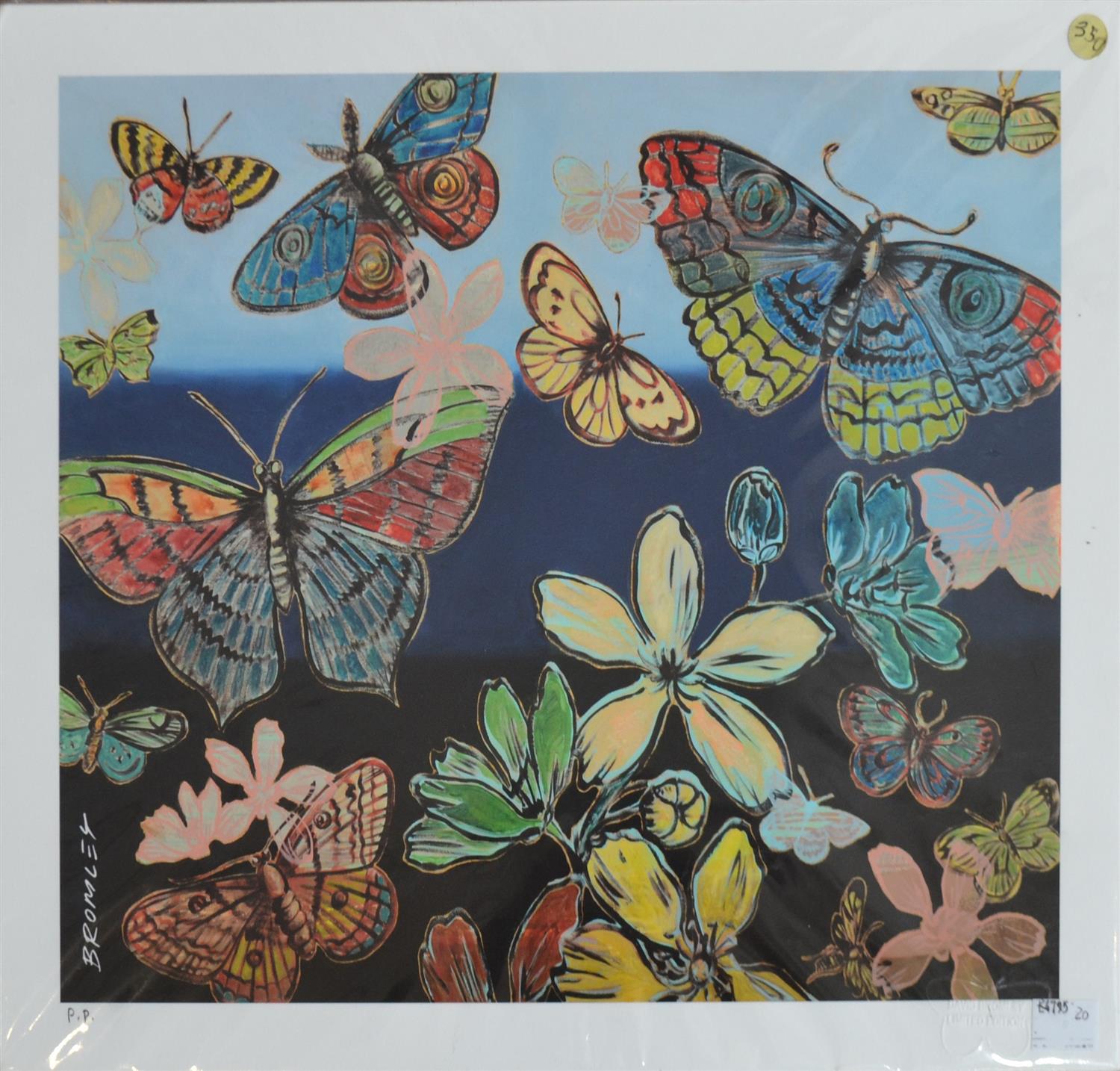A DAVID BROMLEY PRINT, BUTTERFLIES II, DIGITAL PRINT P/P, UNSIGNED, IMAGE SIZE: 28.5 X 36CM, UNFRAMED, GOOD CONDITION WITH NO FAULTS TO REPORT, PAPER SIZE: 33 X 40CM