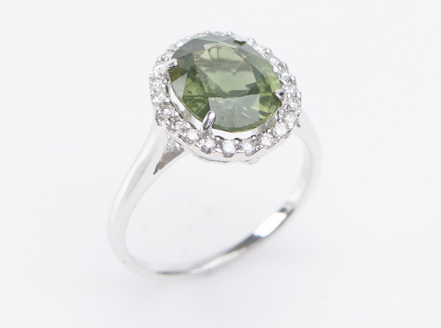 A DIAMOND RING - Of cluster design, featuring a round brilliant cut diamond weighing 1.84cts, within a sectional border of fine diam...