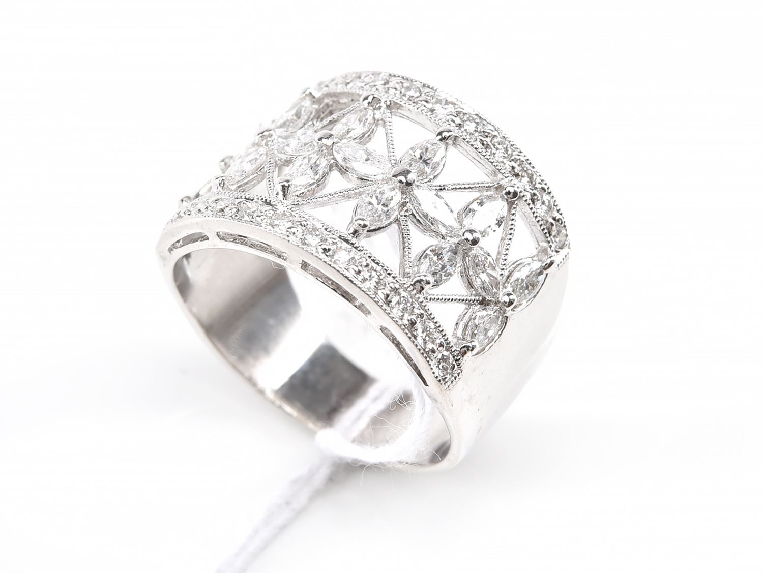 A DIAMOND ETERNITY RING SET WITH TWENTY ONE PRINCESS CUT DIAMOND TOTALLING 6.50CTS, IN 18CT WHTE GOLD, SIZE L, 7GMS