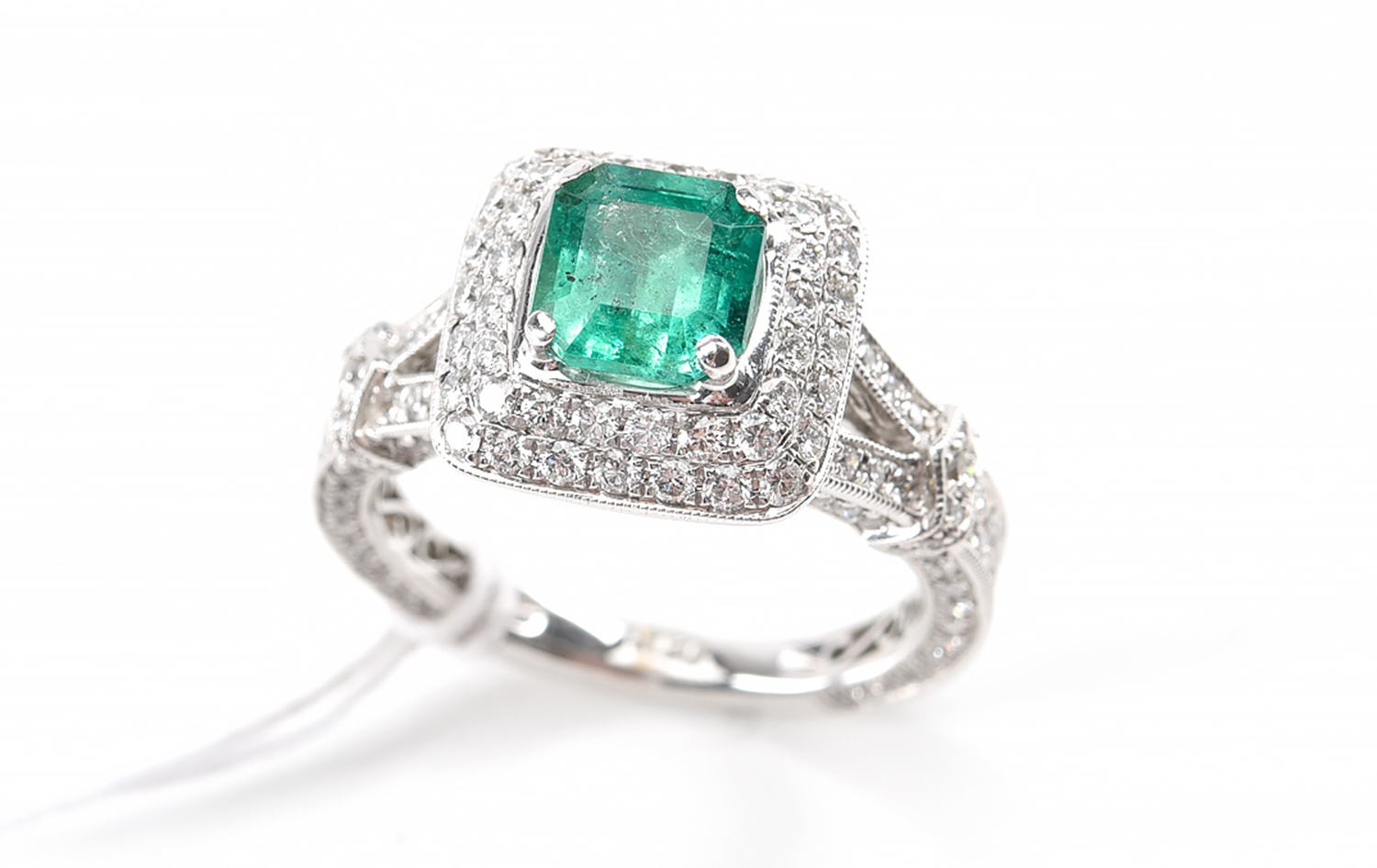 The emerald shows a medium vivId green colour with Si in clarity.