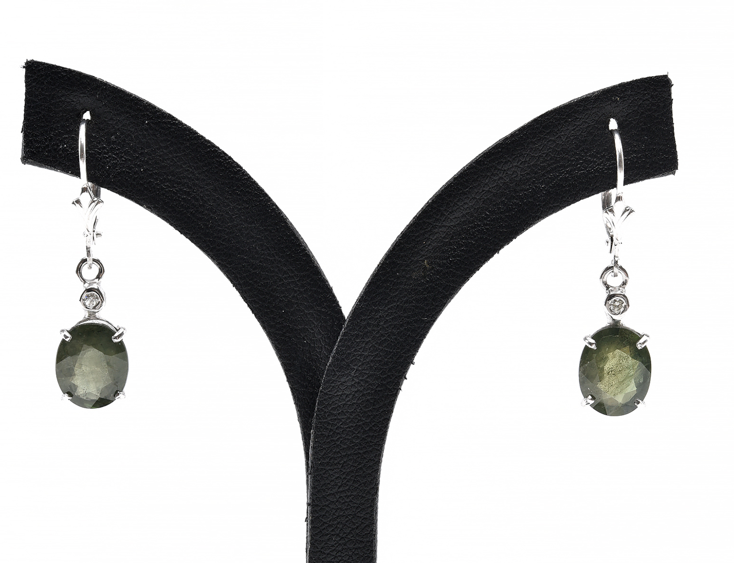 A PAIR OF GREEN SAPPHIRE AND DIAMOND DROP EARRINGS, THE SAPPHIRES WEIGHING 6.12CTS IN 18CT WHITE GOLD