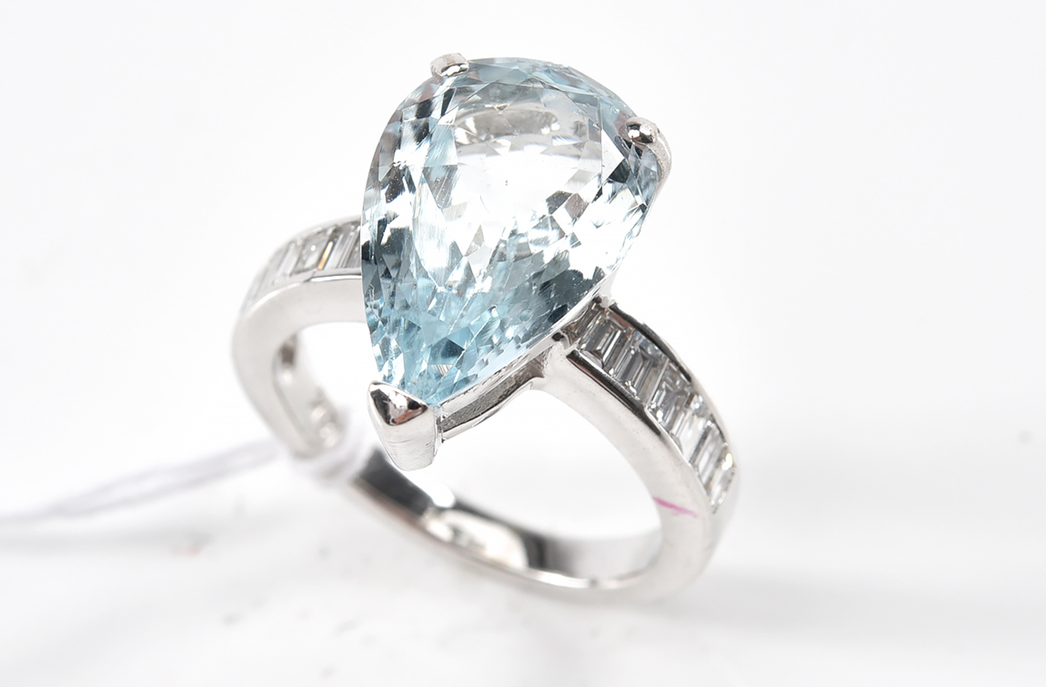 In as new condition. The aquamarine measures 15.6 x 10.0 x 6.0mm. The diamonds are approximately VS in clarity and G in colour. Total weight 6.05grams.