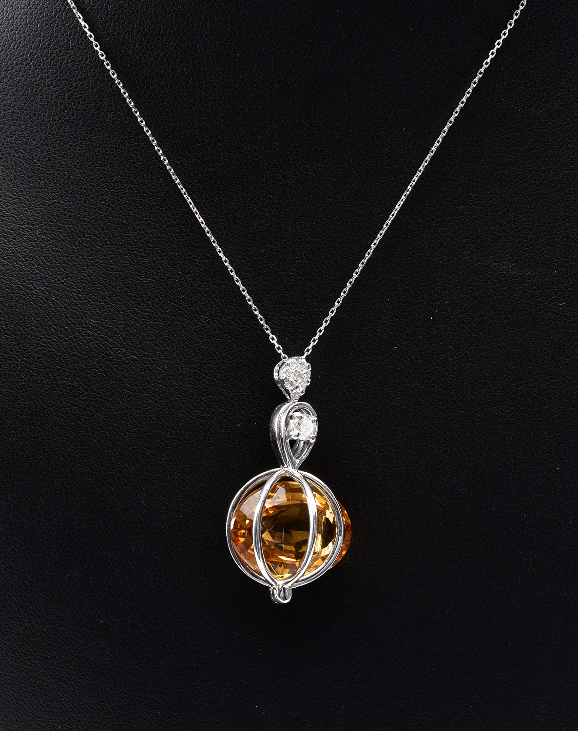 A KUNZITE AND DIAMOND PENDANT NECKLACE - Featuring a large pear cut kunzite weighing 172.78cts, in a double claw setting with a diam...