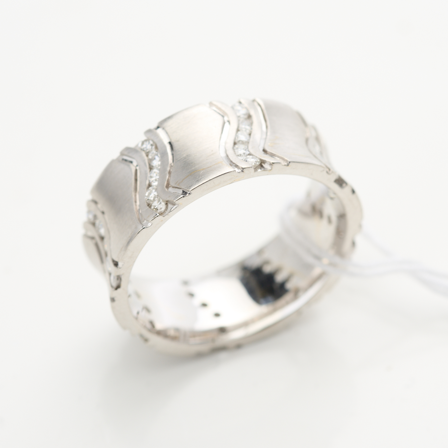 A DIAMOND SET BAND TOTALLING 0.85CTS IN 18CT WHITE GOLD, SIZE P, 9GMS