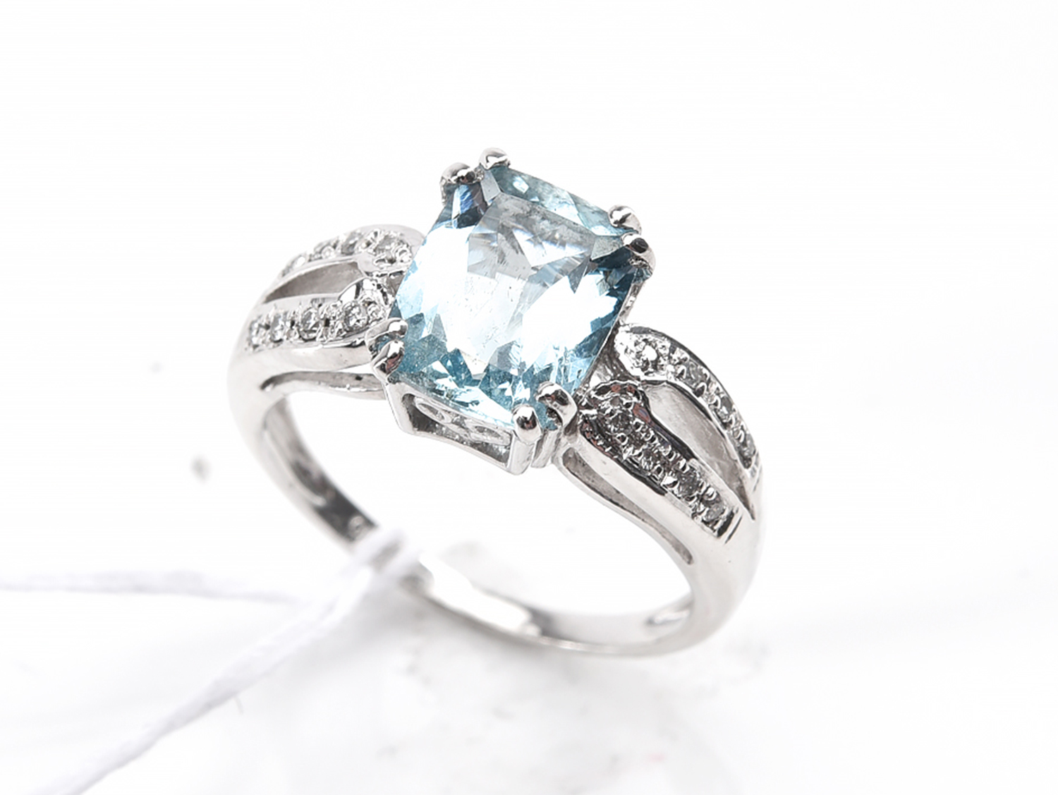 The aquamarine measuring 9.12 x 7.18 x 4.96mm