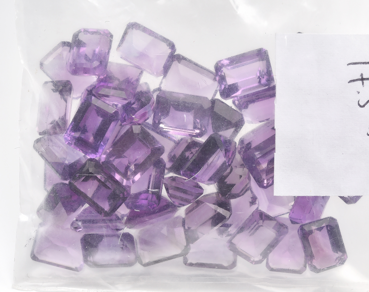 A COLLECTION OF LOOSE EMERALD CUT AMETHYSTS WEIGHING 77.50CTS