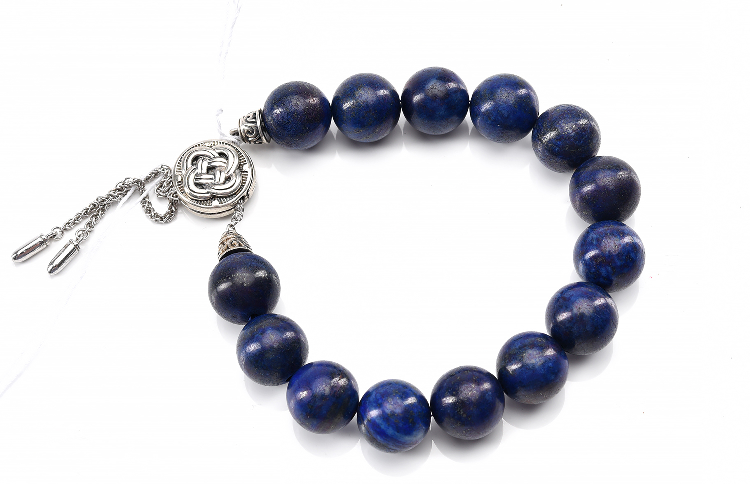 A LAPIS-LAZULI BEAD BRACELET IN STERLING SILVER (NEEDS TO BE RE-STRUNG)