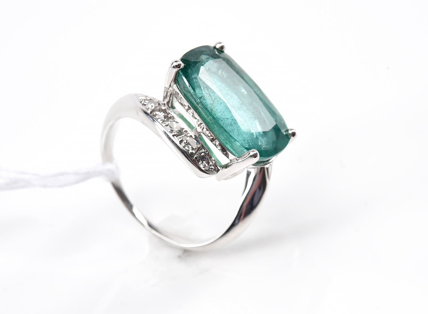Emerald weighs 5.20ct and Diamonds total 0.27ct