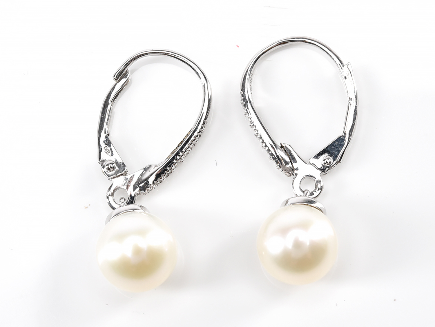 A PAIR OF PEARL (7.8 to 7.9MM) AND DIAMOND EARRINGS IN 9CT WHITE GOLD