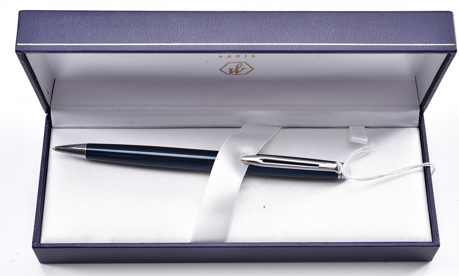 A WATERMAN BALLPOINT PENCIL IN BLUE ENAMEL