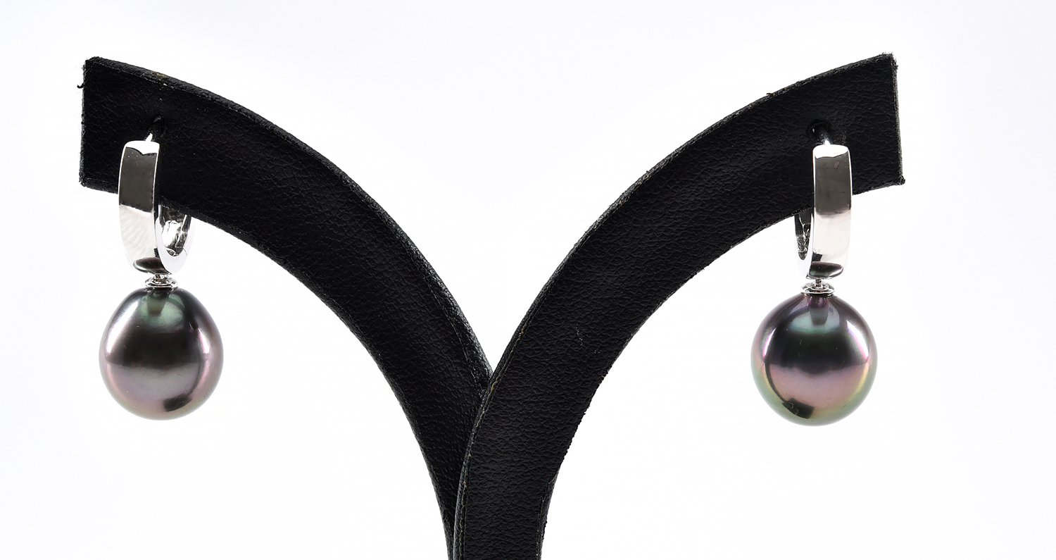 A PAIR OF TAHITIAN PEARL (11.3x12MM) DROP EARRINGS IN STERLING SILVER
