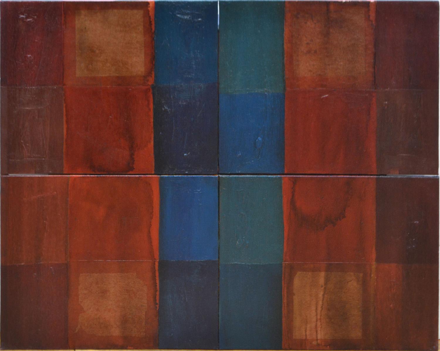TONY SCOTT, CHECK SERIES A 1996, OIL AND COLLAGE OF JOSS PAPER ON CANVAS, 40 X 50CM, CONDITION: OVERALL GOOD, NO FAULTS, NO FRAME