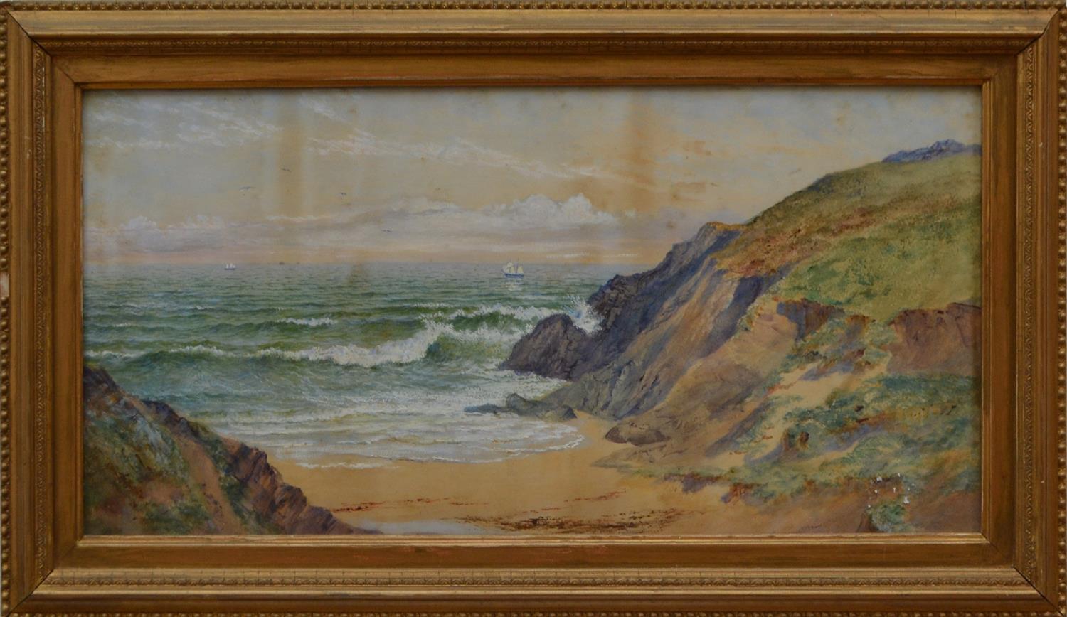 ARTIST UNKNOWN, SEASCAPE, WATERCOLOUR, 28 X 56CM, FRAMED: 39 X 66CM, CONDITION: DISCOLOURATION AND STAINING THROUGHOUT, LEONARD JOEL DELIVERY SIZE: MEDIUM