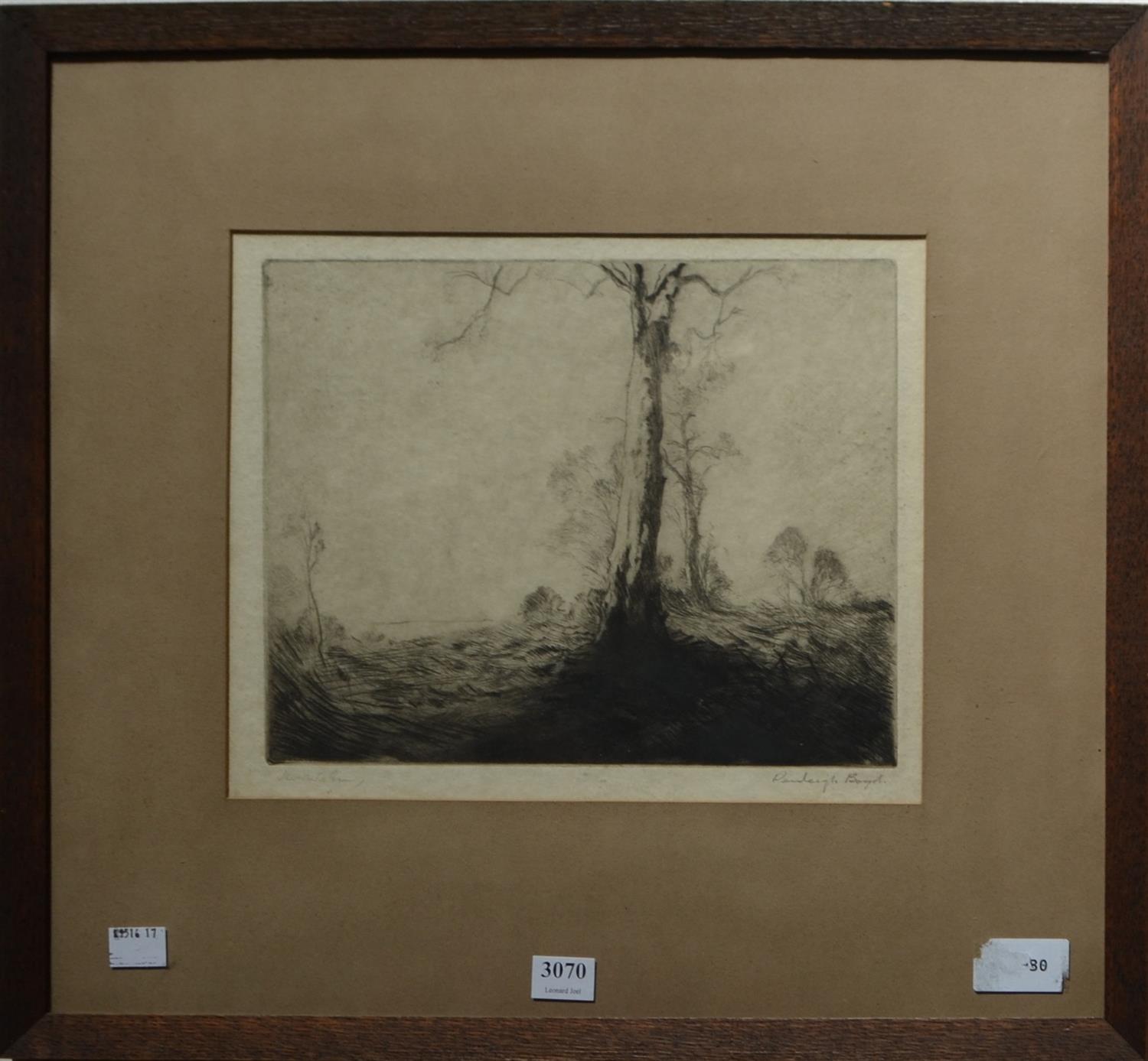 PENLEIGH BOYD, THE WHITE GUMS, ETCHING, TITLED AND SIGNED BELOW IMAGE, IMAGE SIZE: 20 X 25.5CM, CONDITION: FAIR CONDITION, MINOR FOXING AND DISCOLOURATION TO PAPER AS WITH AGE, ORIGINAL FRAME, FRAME SIZE: 42 X 46CM