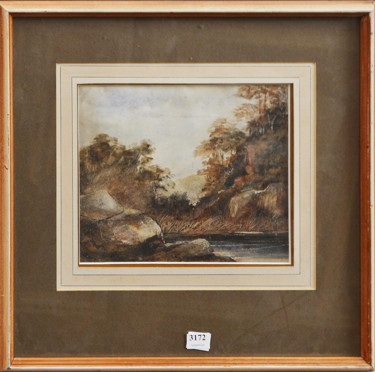 POSSIBLY ROBERT RUSSELL, LANDSCAPE, WATERCOLOUR, IMAGE SIZE: 20 X 23CM, FRAME SIZE: 41 X 42CM