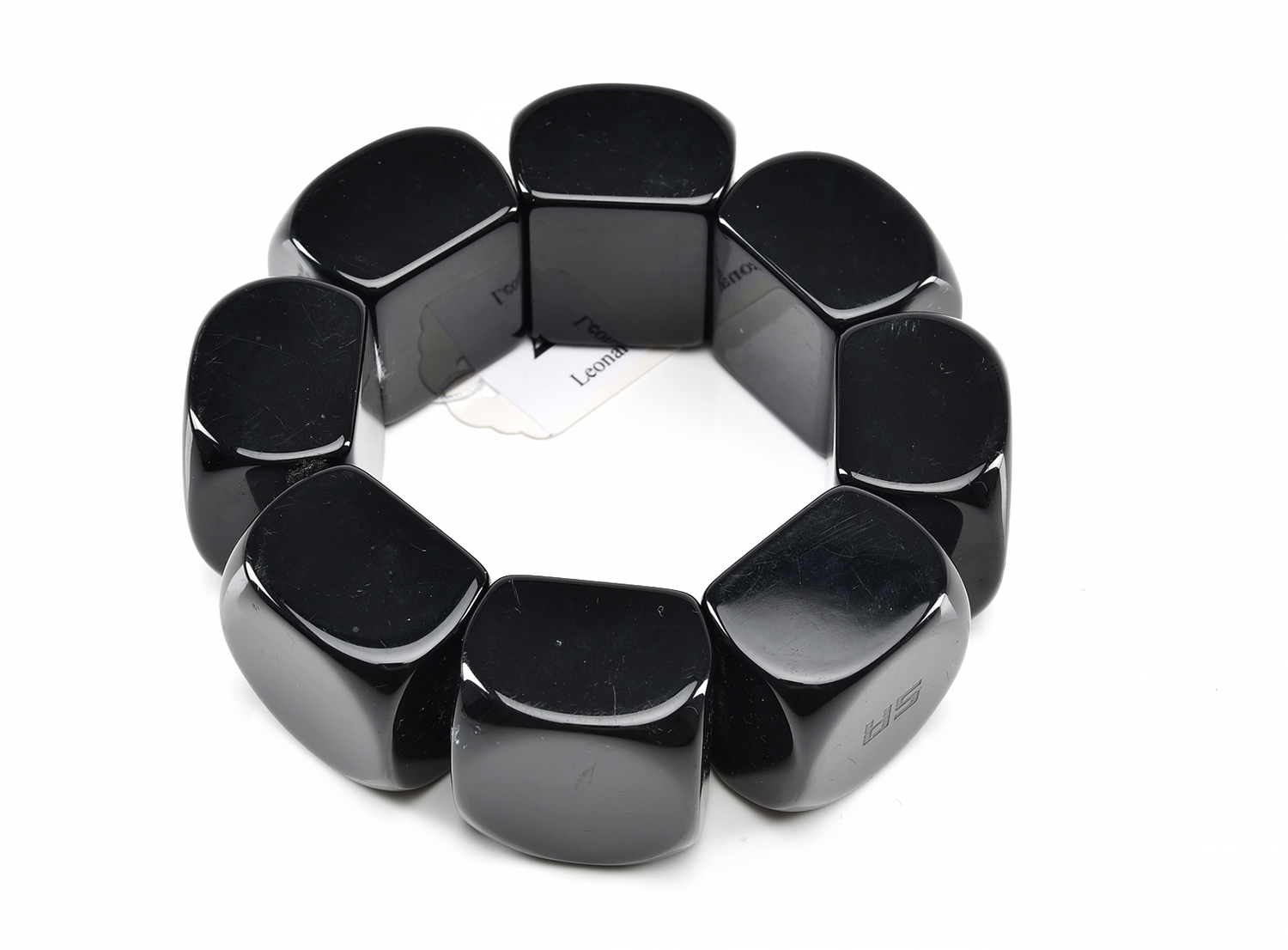 A BRACELET BY SONIA RYKIEL - Styled with black composite beads, signed SR.