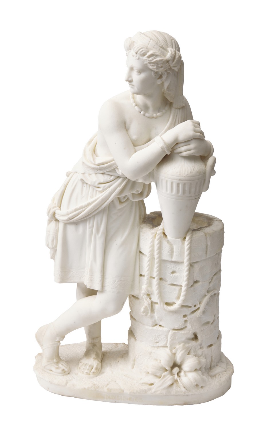 A LARGE CARVED MARBLE FIGURE OF REBECCA AT THE WELL