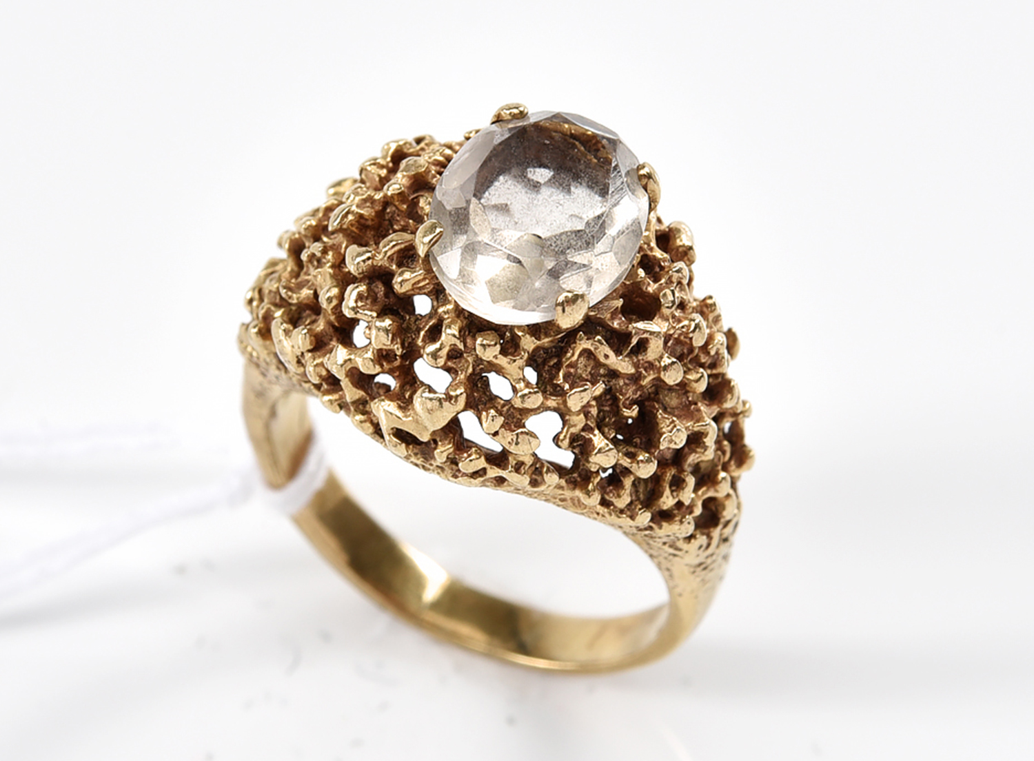 A GEM-SET DRESS RING IN 9CT GOLD, SIZE Q
