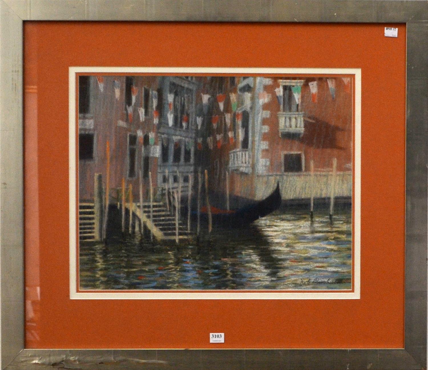 DALE MARSH, VENICE I, PASTEL ON PAPER, IMAGE SIZE: 38 X 48CM, CONDITION: IN GOOD CONDITION, MINOR COCKLING TO PAPER, FRAME SHOWS SIGNIFICANT WEAR AND WATER DAMAGE, FRAME SIZE: 66 X 76CM