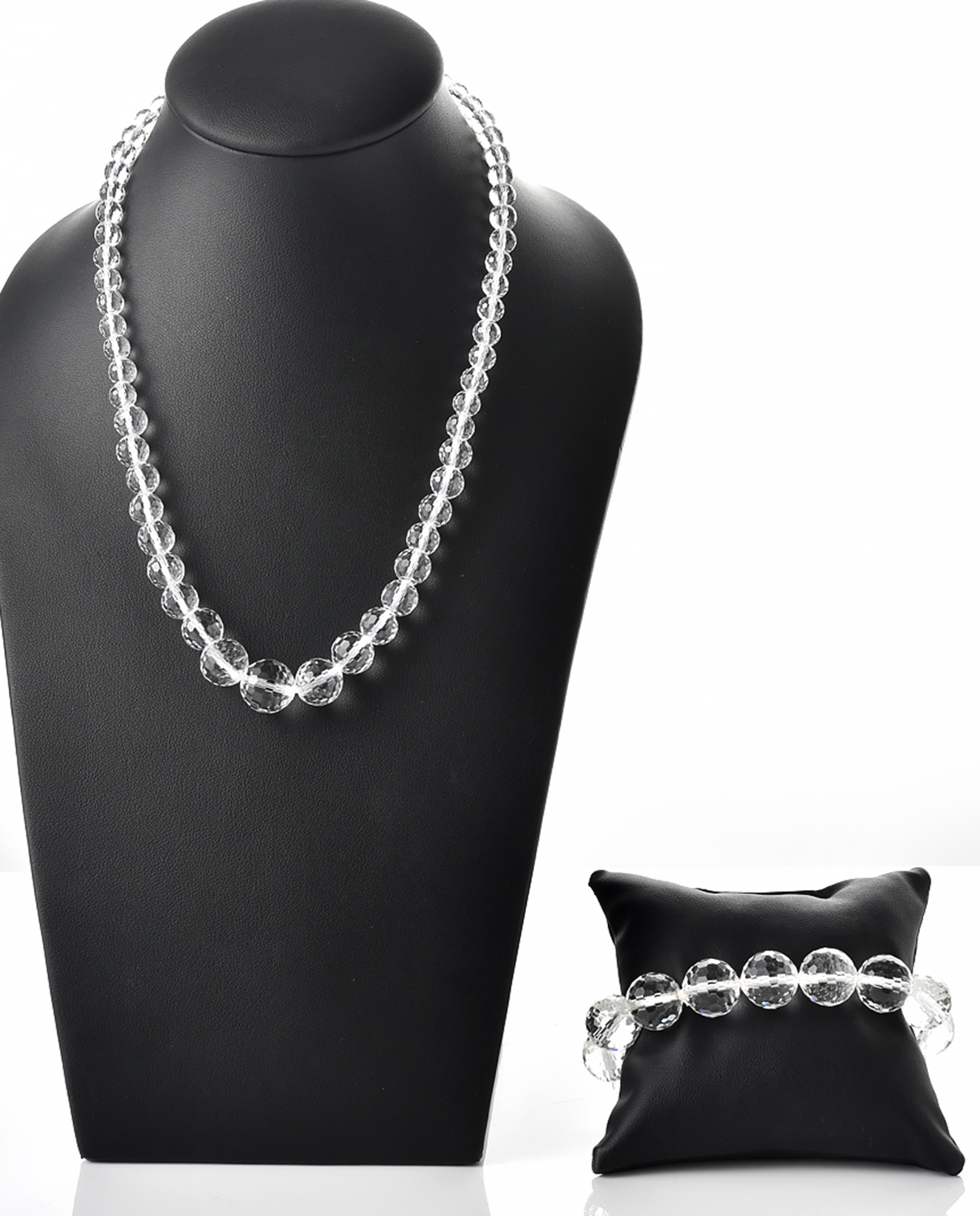 A GRADUATED ROCK CRYSTAL BEAD NECKLACE (LENGTH 460MM), TOGETHER WITH A MATCHING BRACELET