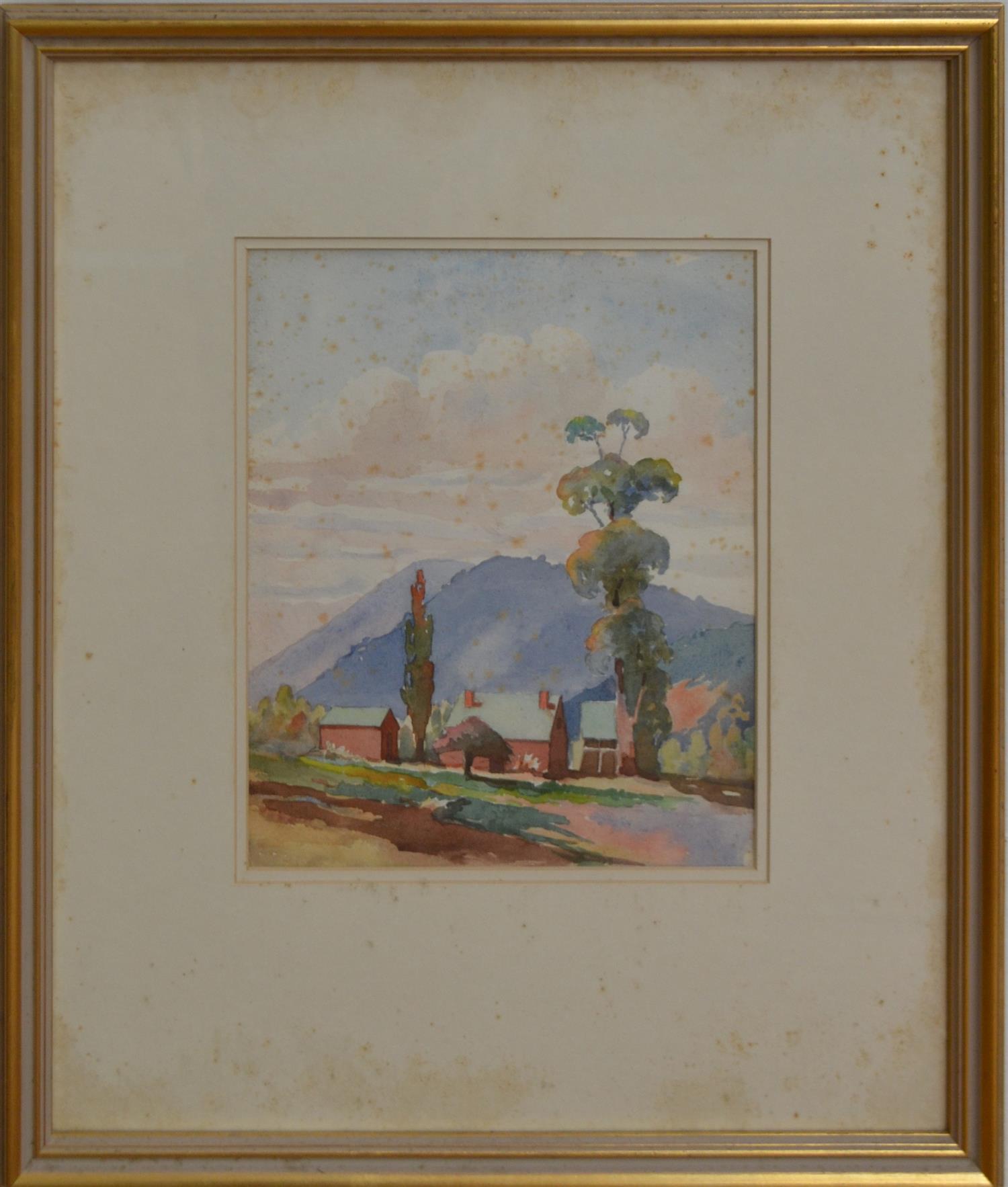 JOHN HARGREAVES, LUXTON'S DANDENONG, WATERCOLOUR, 27 X 22CM FRAME SIZE: 51 X 44CM, CONDITION: SEVERE FOXING OVERALL, MOULDING TO MOUNT
