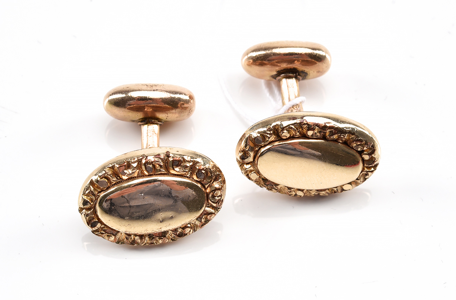 A PAIR OF ANTIQUE CUFFLINKS, GOLD PLATED