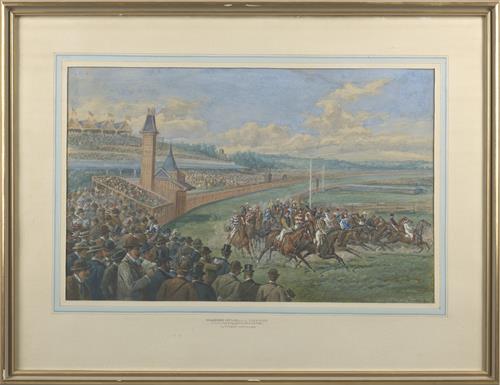 The frame has some small losses and scratches and the work is behind non-reflective glass. Overall size is 56 x 73cm.