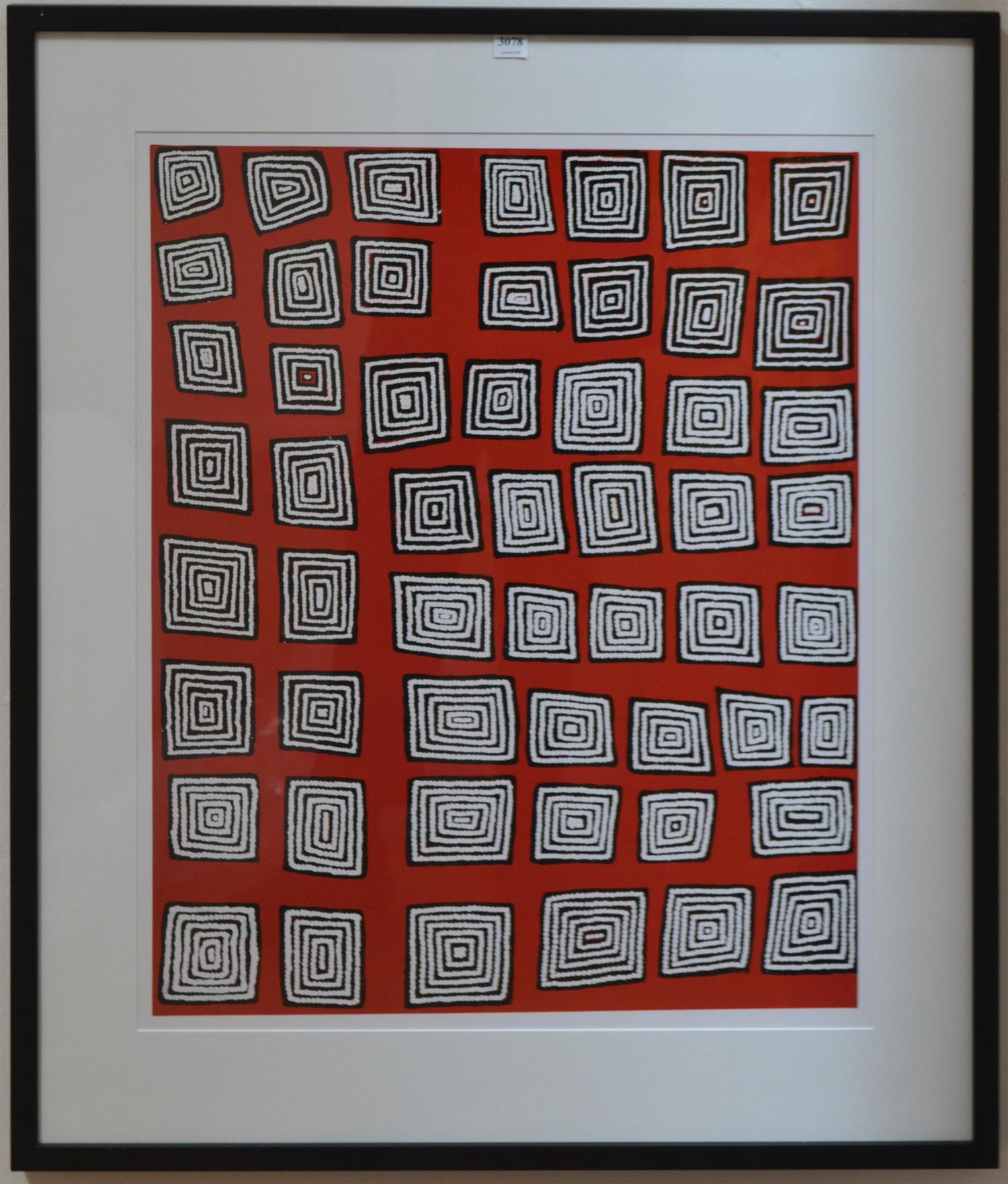 ARTIST UNKNOWN, INDIGENOUS ARTWORK, REPRODUCTION PRINT, FRAME SIZE: 88 X 74CM, CONDITION: VERY GOOD, NO FAULTS