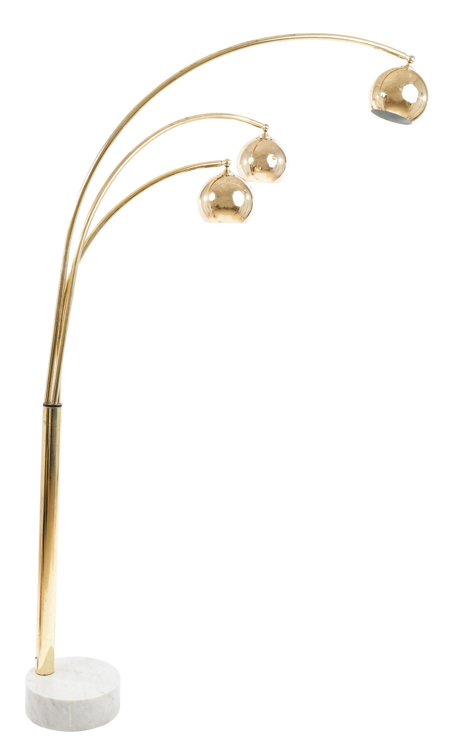Major losses to gold patina. Structurally sound with all arms moveable. Minor surface scratches and chips to marble base.