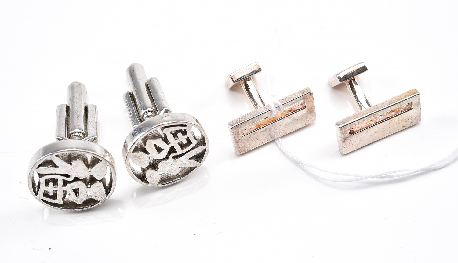 TWO PAIRS OF VINTAGE CUFFLINKS IN STERLING SILVER, ONE WITH CHINESE GOOD LUCK MOTIF