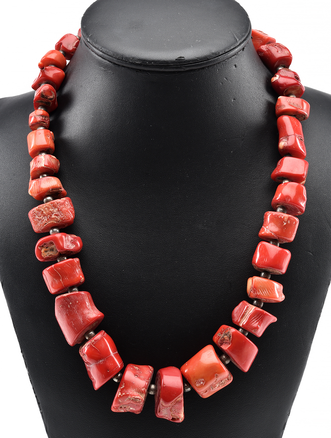 A STRAND OF DYED CORAL BEADS