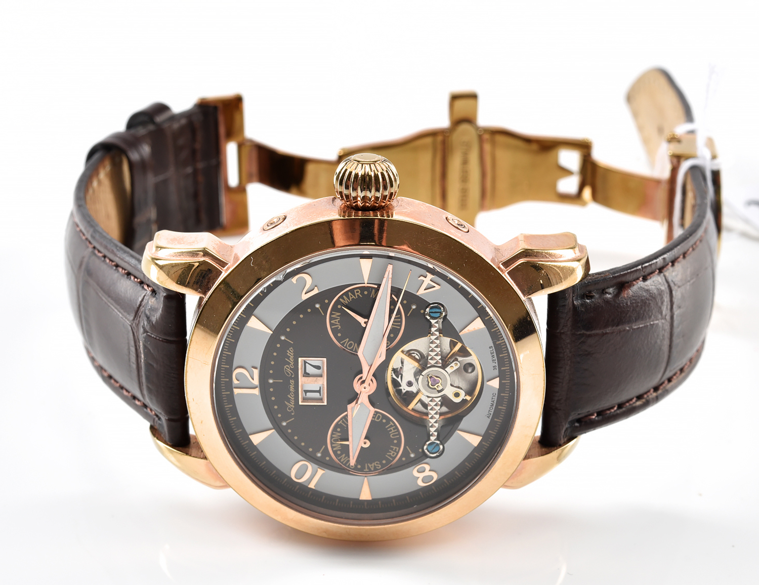 A GENTLEMAN POLETTO MULTI FUNCTION AUTOMATIC WRISTWATCH TO A ROSE TONE CASE