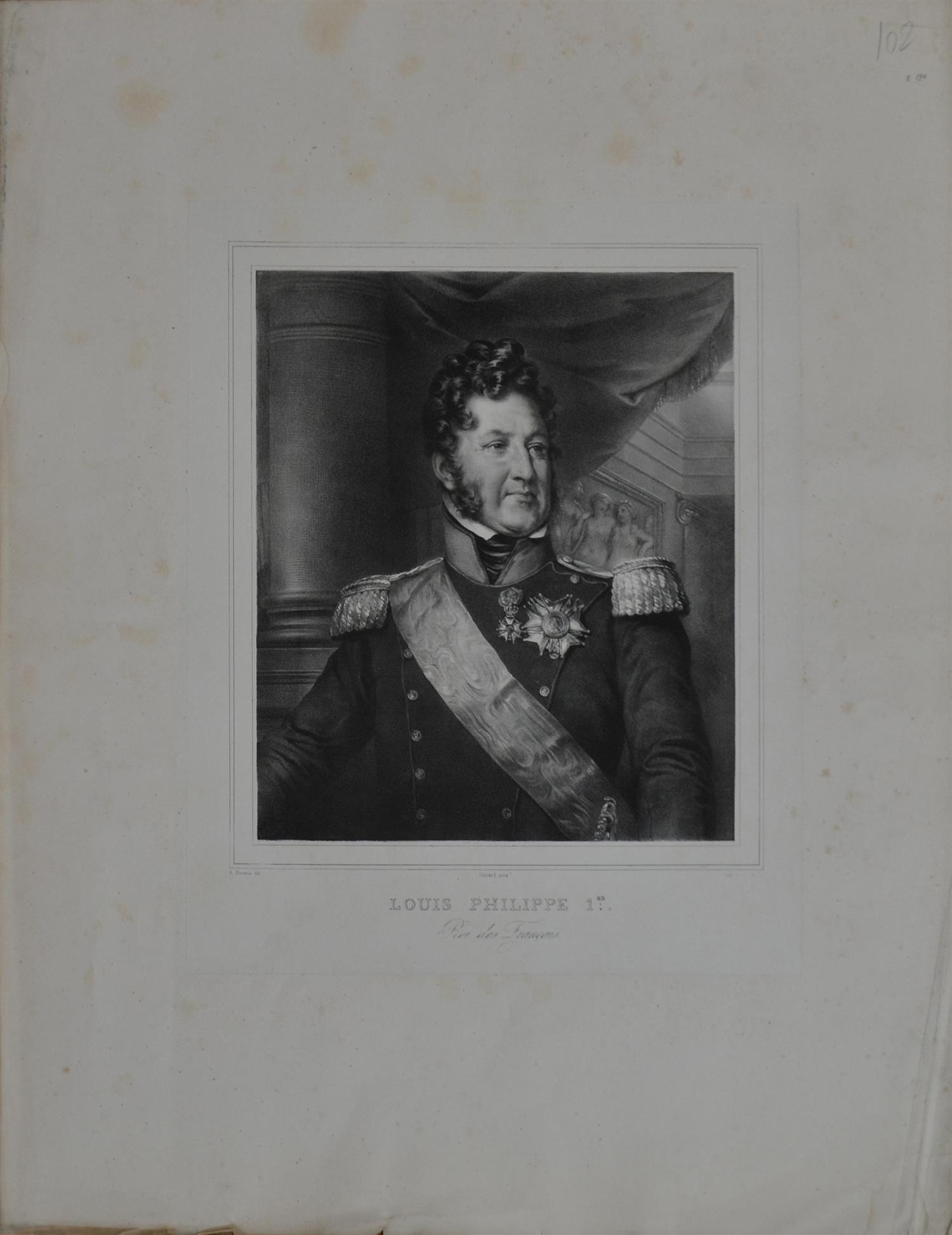 AFTER FRANCOIS PASCAL SIMON GERARD, HM LOUIS-PHILIPPE, KING OF THE FRENCH C. 1830S, LITHOGRAPH, IMAGE SIZE: 33 X 27.5CM, UNFRAMED, CONDITION: FOXING THROUGHOUT, CREASES AND TEARS TO EDGES, PAPER SIZE: 72 X 55CM