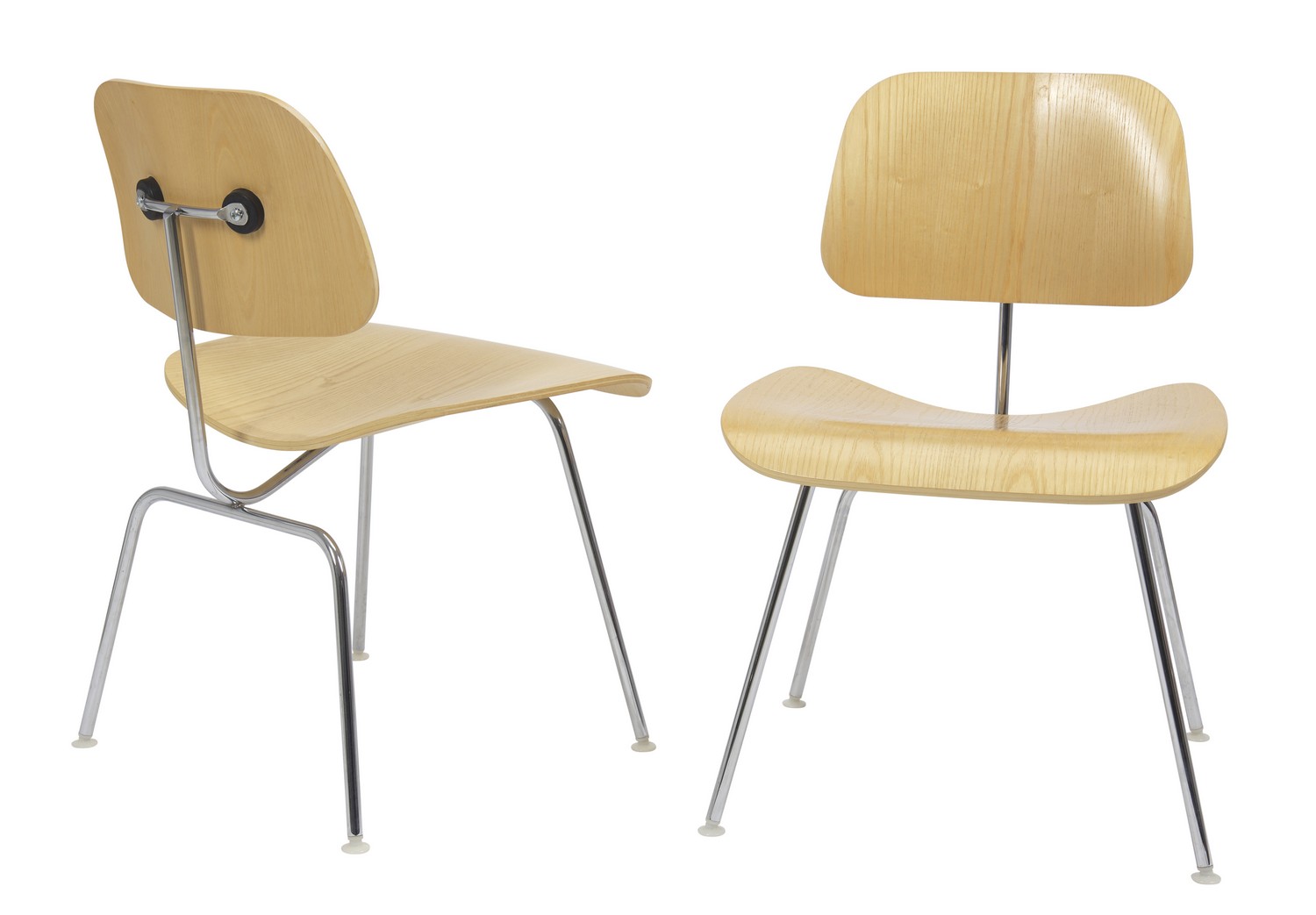 Moulded ash, plywood seat and back. Metal frame, rubber book glides