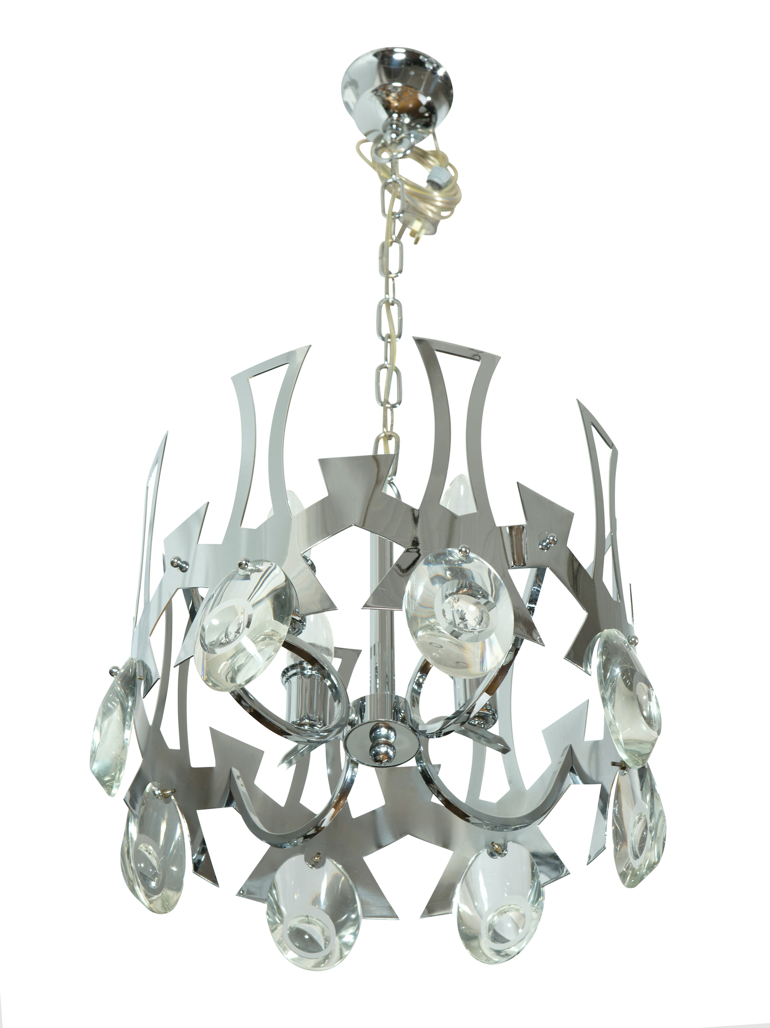 This light has been completely restored. Glass in great condition, minor surface scratches to chrome consistent with age.